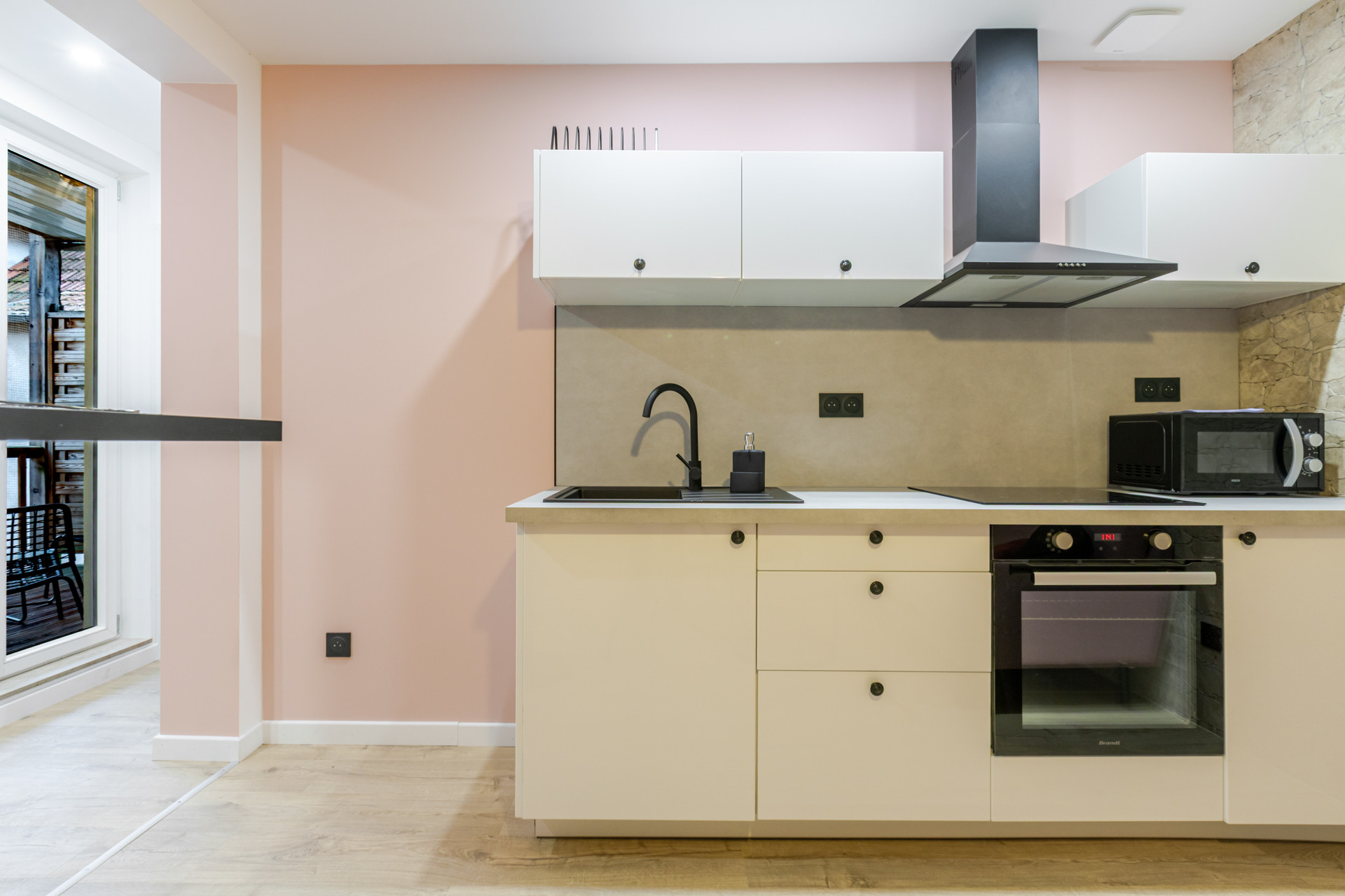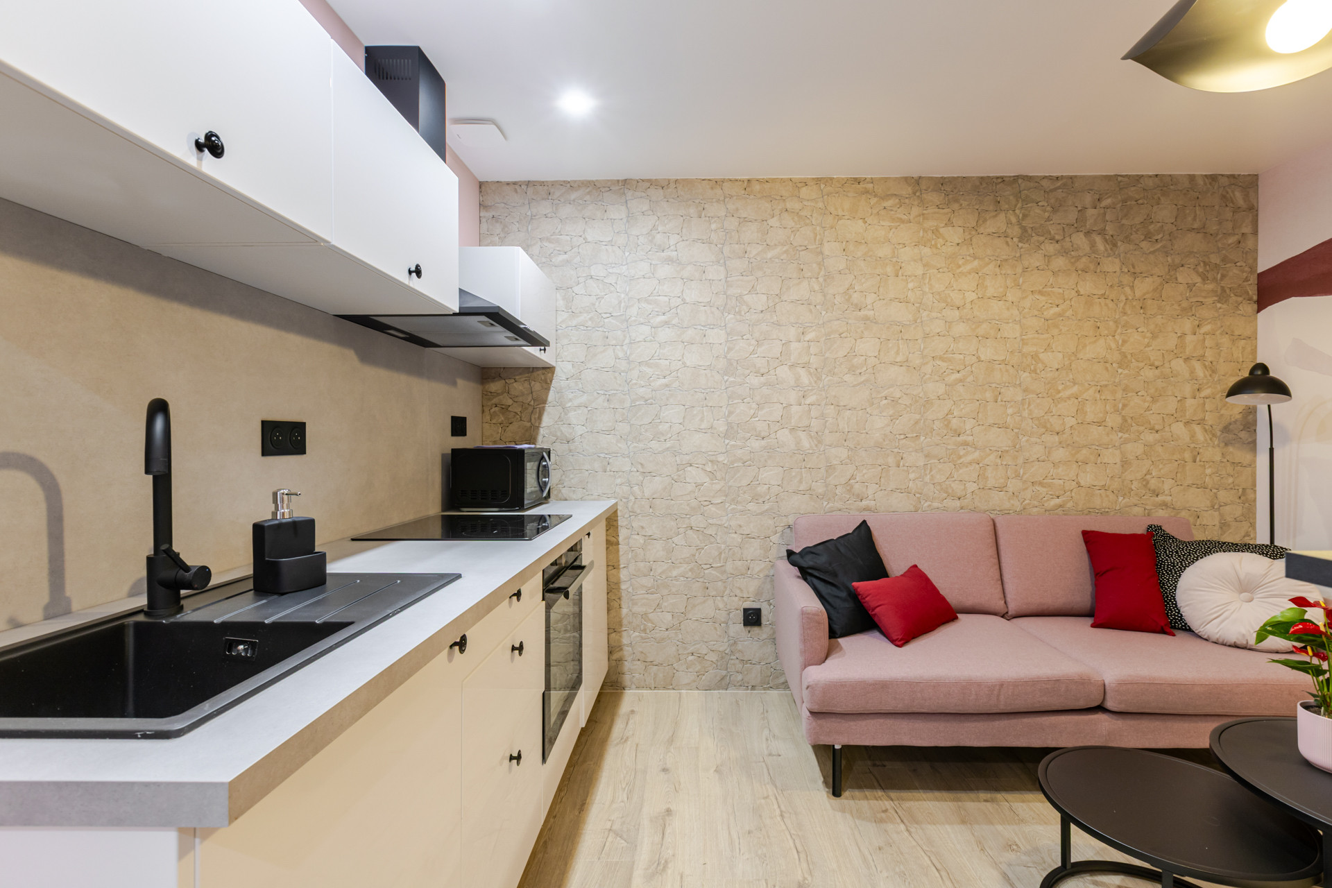 Cette cuisine dispose d’une plaque induction 3 feux, d’un four, d’un micro-onde, d’un réfrigérateur-congélateur, d’une cafetière, d’une cafetière à piston, d’une bouilloire.